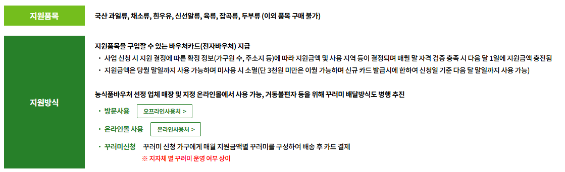 -농식품바우처는 단순한 현금지원이 아니므로, 사용처와 구매 가능 품목에 대한 제한이 분명하게 존재합니다.