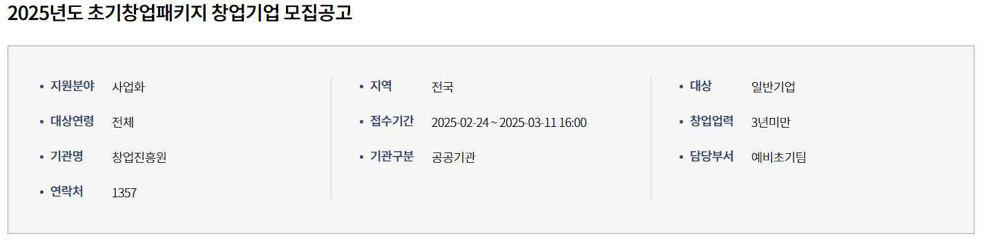 초기창업패키지는 창업 3년 이내의 기업을 대상으로 하며, 최대 1억 원의 지원금을 제공합니다.